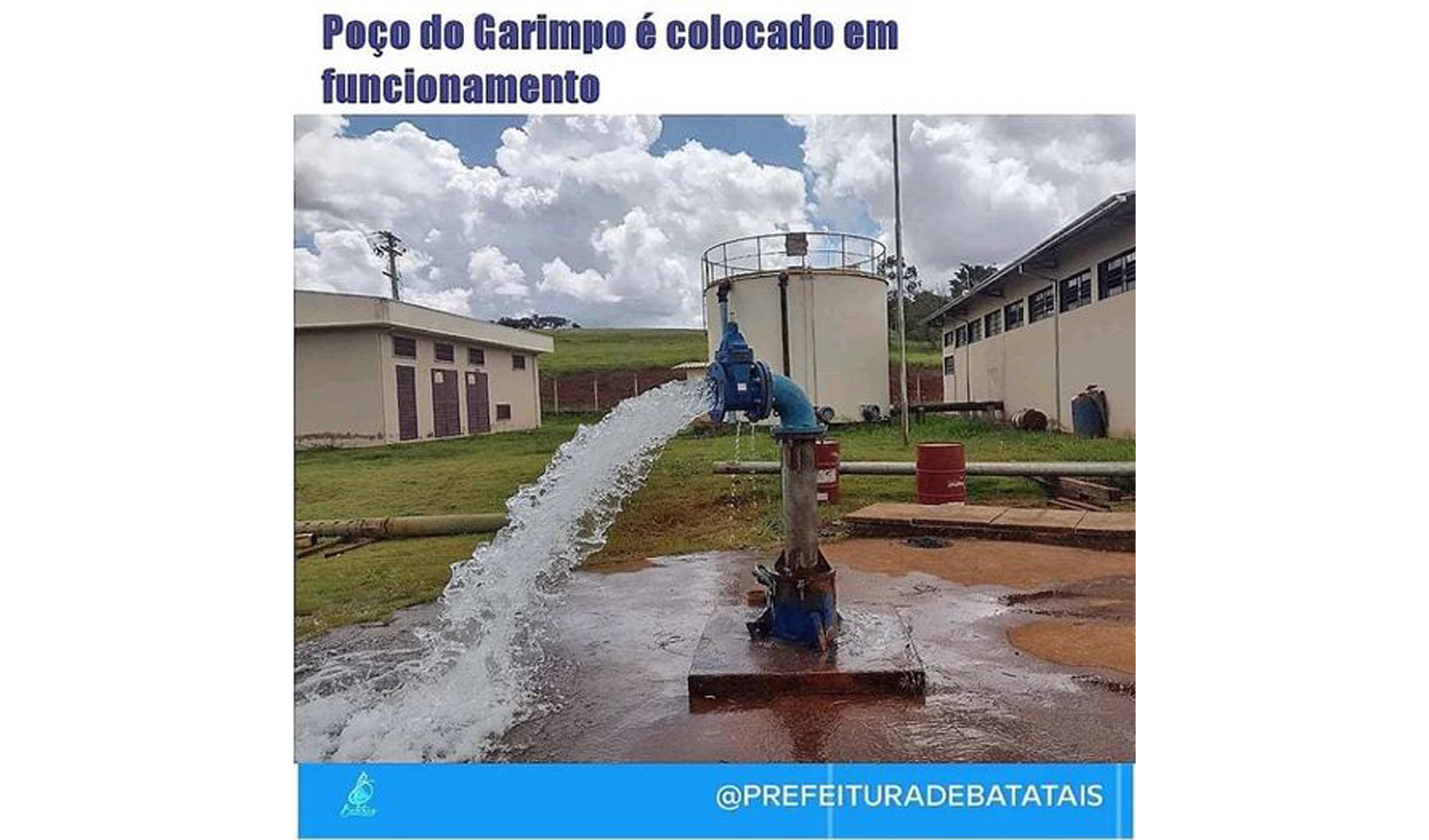 A Prefeitura Municipal, por meio da Secretaria de Obras, Planejamento e Serviços Públicos, colocou o poço do garimpo para funcionar