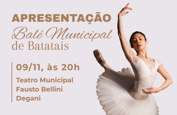 A tradicional apresentação anual do Balé Municipal de Batatais acontecerá no dia 9 de novembro, às 20h, no Teatro Municipal Fausto Bellini Degani, consolidando-se como um dos momentos mais esperados do calendário cultural da cidade.