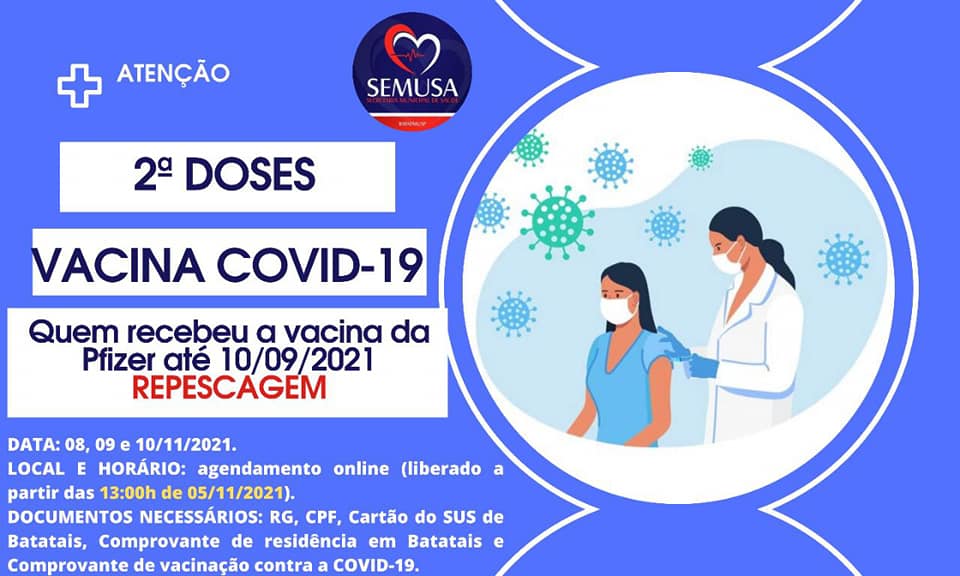 Segundas doses (REPESCAGEM) de quem recebeu a vacina da PFIZER até 10/09/2021;
