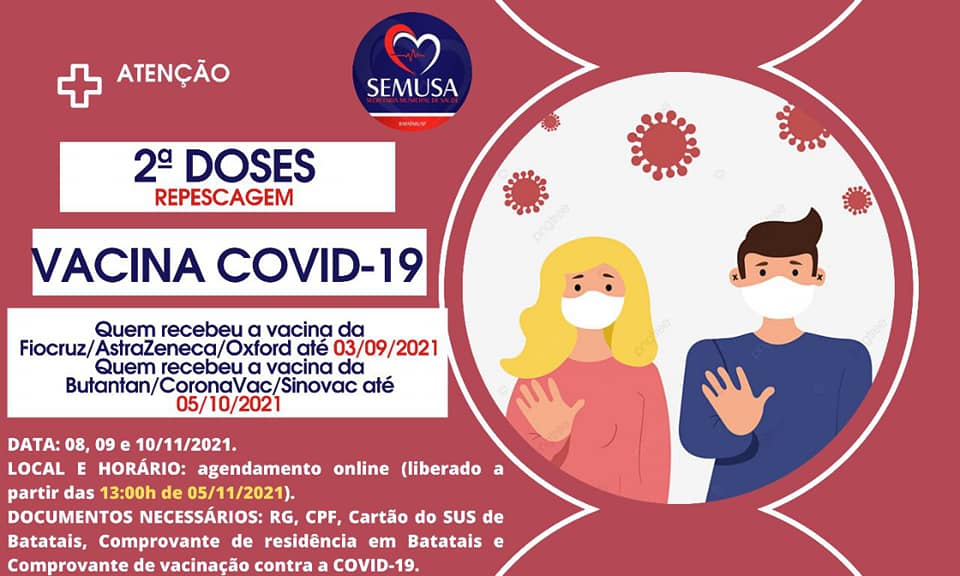 Segundas doses (REPESCAGEM) de quem recebeu a vacina da CoronaVac/SinoVac/Butantan até 05/10/2021;