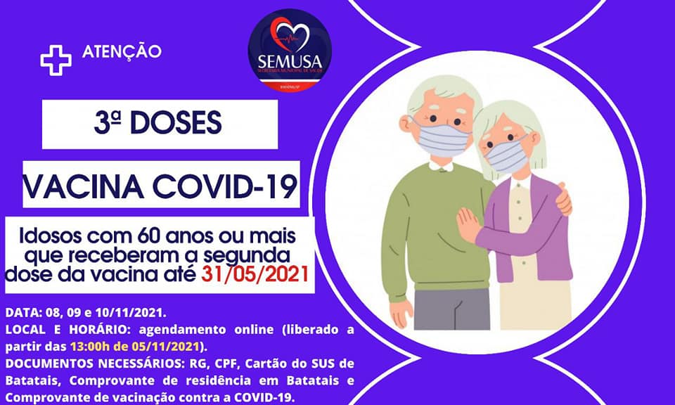 Terceiras doses (DOSE ADICIONAL) de idosos com 60 anos ou mais que receberam a segunda dose da vacina contra a COVID-19 até 31/05/2021;