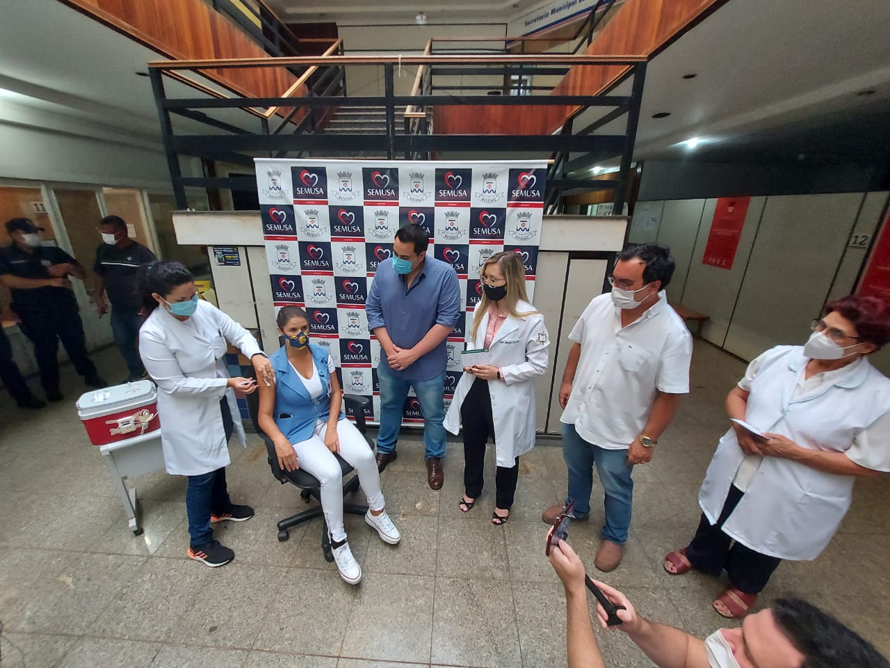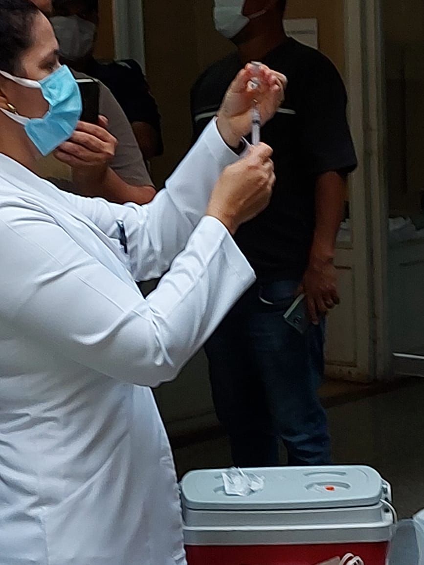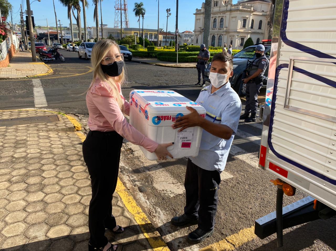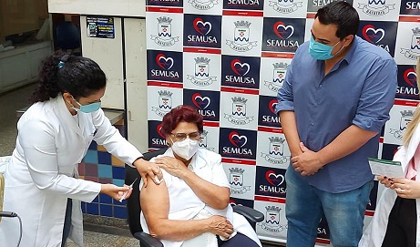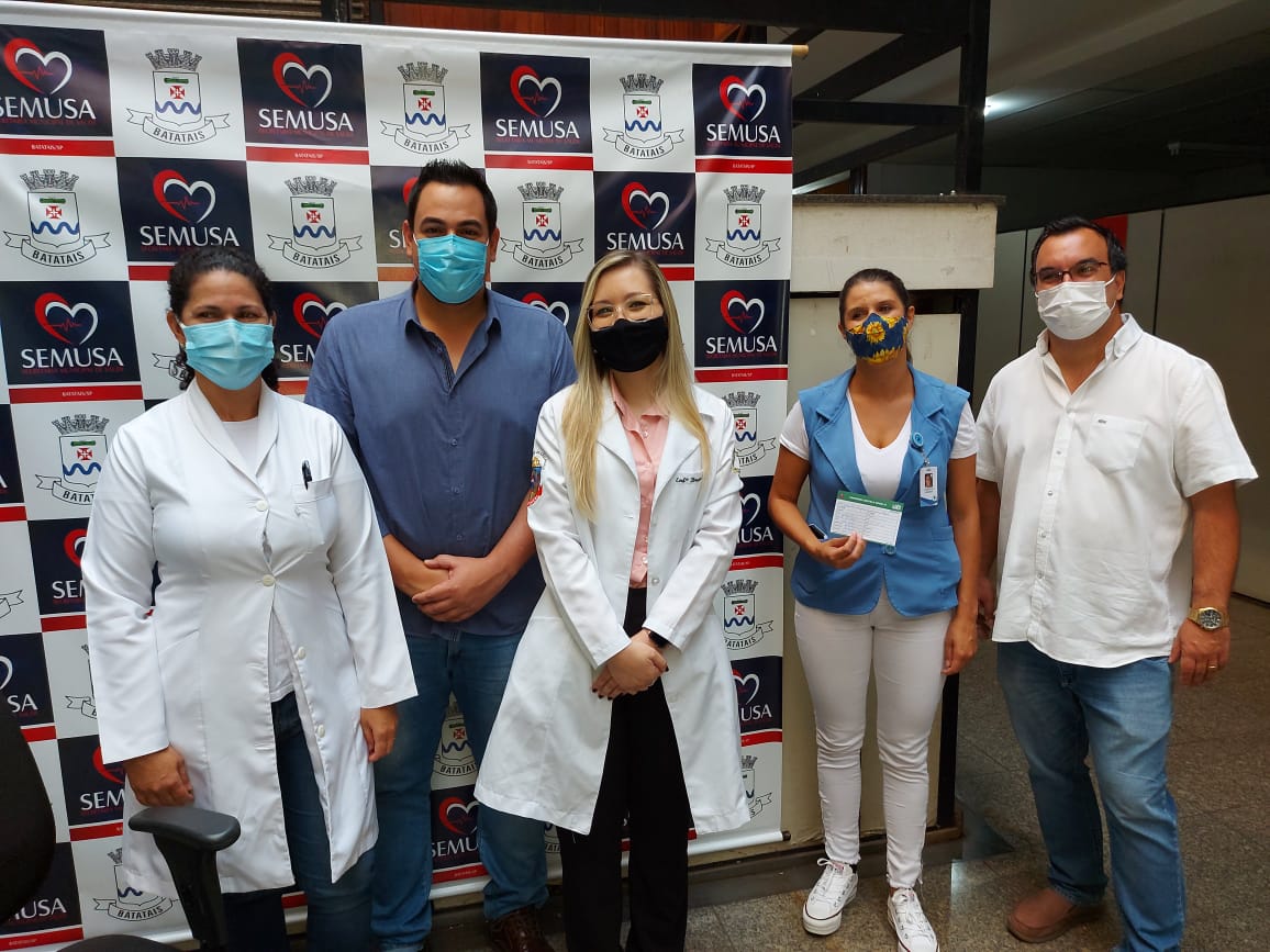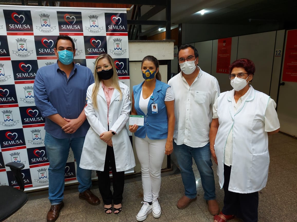 Logo após a chegada das vacinas contra a Covid-19 na manhã desta quinta-feira, 21 de janeiro, a Secretaria de Saúde realizou nas dependências do CIAC a aplicação em duas profissionais que atuam na saúde batataense.Com a presença do Prefeito Juninho Gaspar, do Vice-prefeito Dr. Ricardinho e da Secretária Bruna Toneti foram vacinadas as enfermeiras Rosa Maria de Abreu e Gabrielle Rogeri Ambrosio Lopes. Rosa tem 46 anos de formada, trabalhando na área em nosso município há 42 anos, onde ficou conhecida pelo trabalho importante realizado na Vigilância Epidemiológica, e Gabrielle que atua na Ala Covid da Santa Casa, na linha de frente de enfrentamento da doença. “Momento de muita emoção até porque é o efetivo combate a pandemia que se inicia com a vacinação. Recebemos 680 doses inicialmente que estarão sendo aplicadas em funcionários da Ala Covid da Santa Casa, equipes das unidades básicas, UPA, Ambulatório Covid e também em profissionais que atuam em unidades de longa permanência, como asilos e geriatria. Nossa estima e agradecimento a todos os profissionais de saúde que dedicam suas vidas para atender a todos que precisam nesse momento tão difícil”, disse a Secretária Bruna.O Prefeito Juninho Gaspar afirmou que é motivo de grande alegria receber e iniciar a vacinação na cidade. “Estávamos desde ontem aguardando a chegada do veículo com as vacinas. O importante é que chegou e já começamos a vacinar nos servidores da saúde. Esperamos que em breve mais doses sejam enviadas para o nosso município para seguir a aplicação nos profissionais da saúde e depois para os grupos prioritários que são definidos pelo Ministério da Saúde e Governo do Estado. Que possamos voltar a nos abraçar em breve com o fim da pandemia”, informou o Prefeito.O Vice-prefeito Dr. Ricardinho, como médico que vem acompanhando de perto a evolução da pandemia na cidade, lembrou que o momento é histórico e de grande significado. “É um dia muito aguardado, que marca o início da imunização que vai salvar vidas. Se Deus quiser vamos vencer essa pandemia com a vacina. Pedimos paciência para a população e assim que o Ministério da Saúde for disponibilizando mais doses estaremos informando os grupos de pessoas que deverão receber a vacina”, concluiu.