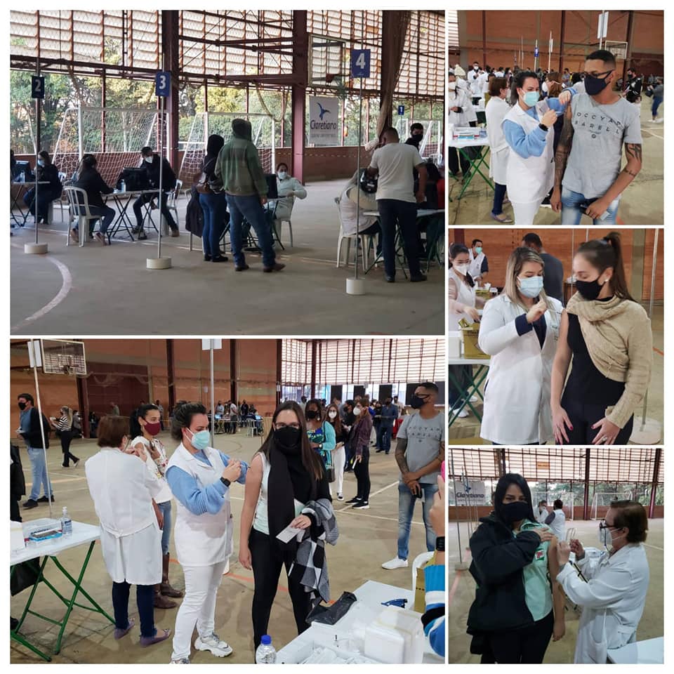 E a primeira dose para 25 a 27 anos nos dias 3, 4 e 5 de agosto nas unidades, com agendamento online já realizado.